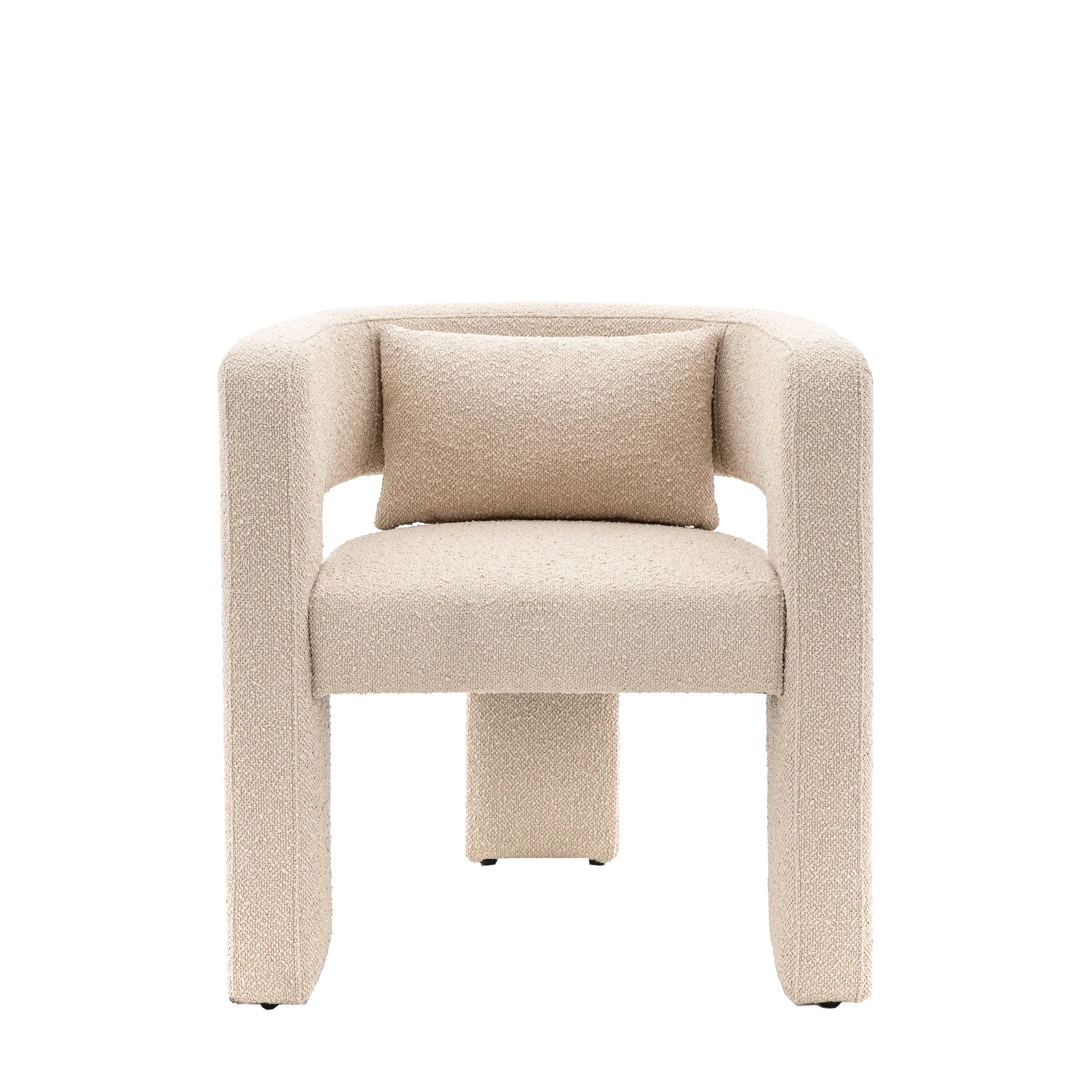 This eye-catching occasional chair adds a stunning, bold design touch to a room. It is fully upholstered in a lovely neutral fabric, with a bolster cushion for added comfort.