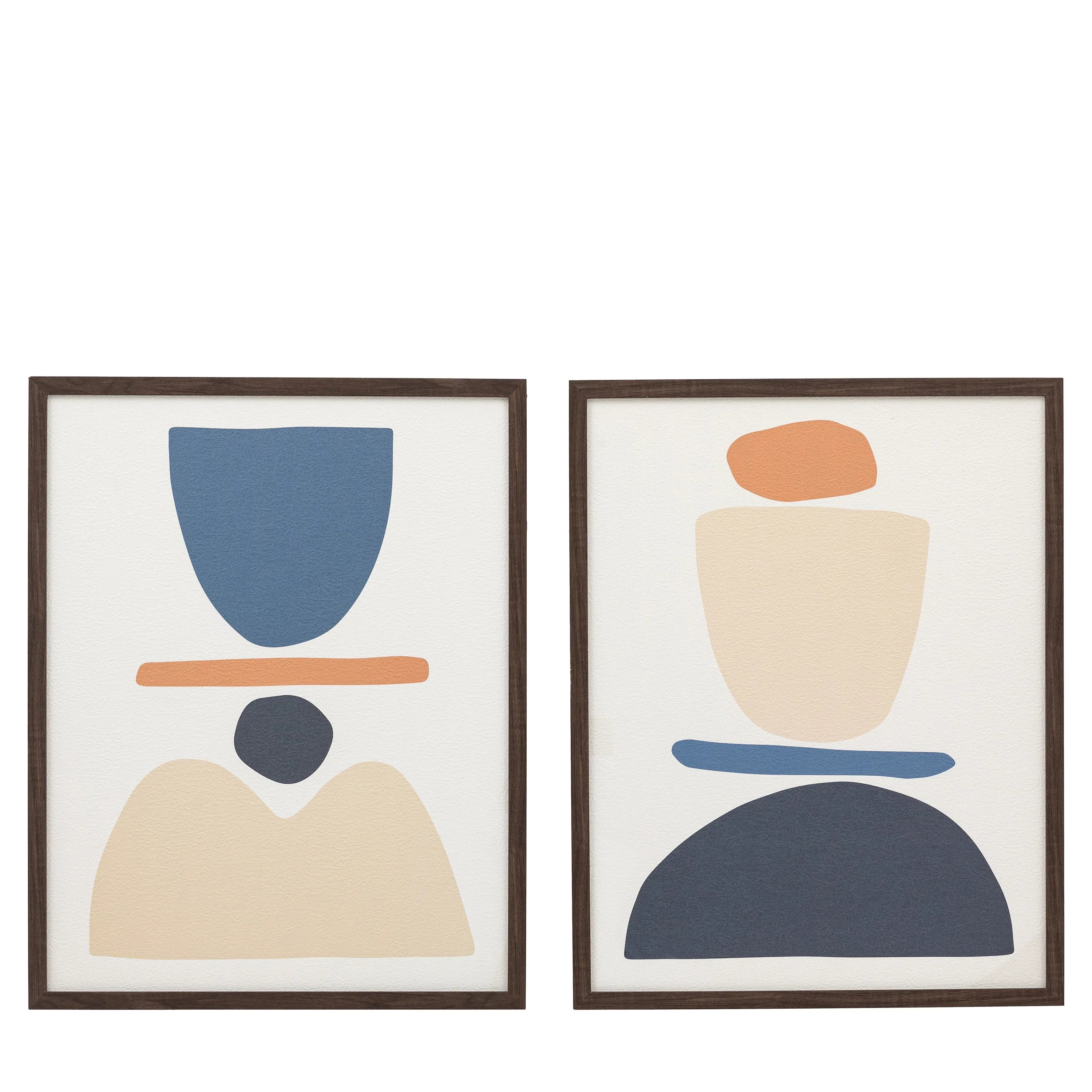 Find harmony with these two complementary prints, featuring carefully balanced shapes and a soothing color palette, creating a sense of calm and tranquility.