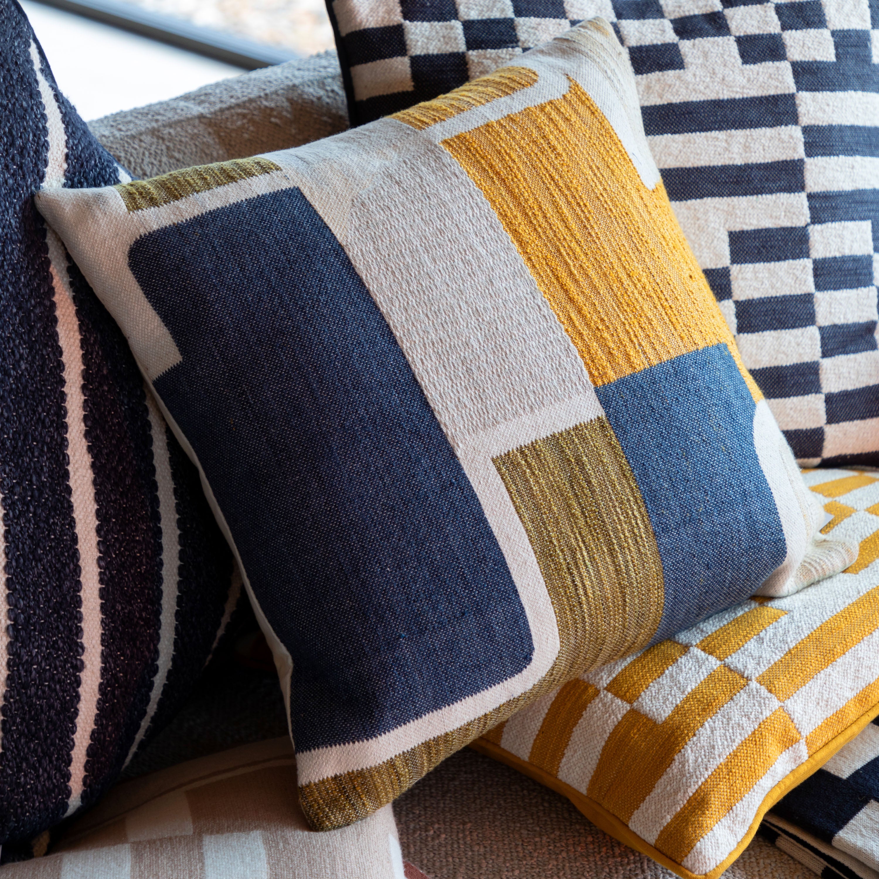 Quinn Jacquard Cushion Ochre & Navy