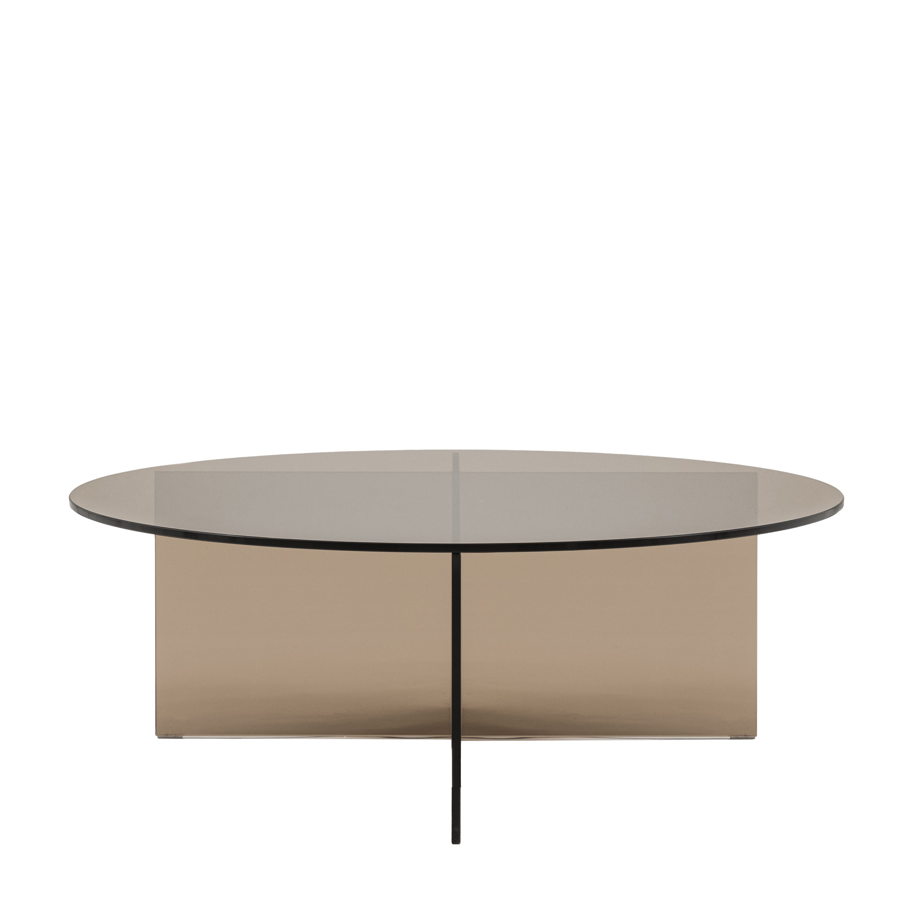 Blending retro style with clean modern lines, this coffee table brings effortless cool to a room. The toughened charcoal toned glass is practical enough for everyday use, while the sleek lines add a contemporary touch to this 70s inspired piece.